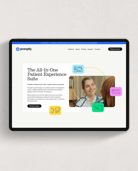 Promptly had built something exceptional behind the scenes: a best-in-class product, standout customer service, and deep care for the specialty clinics they serve. But the way they showed up in the marketplace didn’t reflect that quality. It was time to bring their internal excellence into alignment with their external presence—and invest in the brand with the same thoughtfulness they had poured into the product.